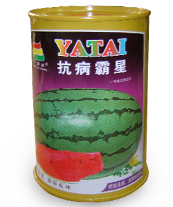 抗病霸星 该品种是采用高科技手段,利用恶劣环境气候育成的杂交一代中晚熟品种。大果型,特抗病,皮色深绿,着齿状美丽大花纹,外观光滑,商品性好,大果可达38公斤以上,产量高。果实椭圆形,果皮薄,平均单瓜重15-20公斤,果肉大红,纤维少,多汁小籽且少,口感极好,糖度14度左右,不易空心,耐贮耐运。