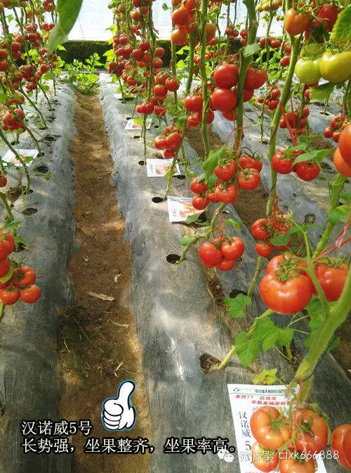 中熟品种,果实颜色好、硬度好,坐果整齐,连续坐果能力强,抗番茄黄化卷叶病毒(TY);
