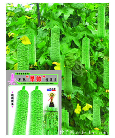 最新研制的皱皮早熟丝瓜品种。它具有抗逆性强,熟性早第一雌花作生与5-7节,挂果力特强,节节现雌,最多可以同时挂果8个,品质好,不易空心,易去皮的优点.瓜翠绿色,微带白霜。瓜长20-40厘米,直径4-5.5厘米,单瓜重200-600克,亩产3000-5000公斤。