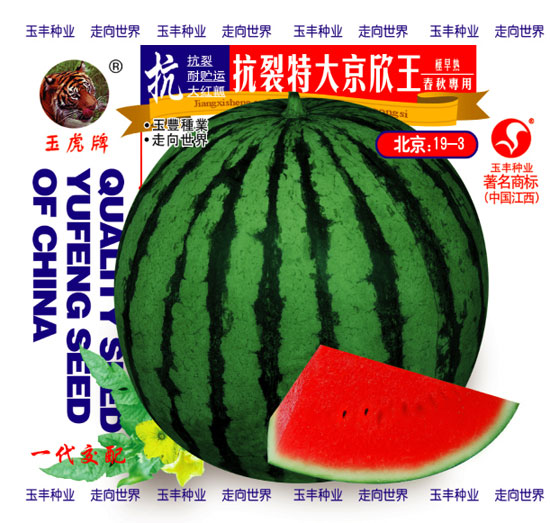 早熟一代杂交,是目前北京替代京欣的优质品种,对照产量明显比京欣增产16.7%,抗裂耐储运,皮色比京欣偏绿,是目前北京最有潜力的大果春秋栽培品种之一。该品种植株幼苗子叶肥大。过手发育期26-28天。第一雌花节位7-9节,雌花间隔4节,果实高圆型,底色浅绿,14-16条齿状墨绿条纹。瓤色大红,沙瓤,中心折光糖13%,单果重7-10公斤,耐贮运。种子黑麻,椭圆型,千粒重36克。