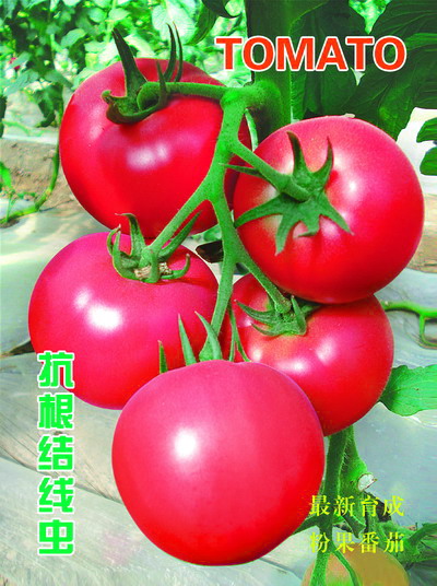 最新育成粉果抗线虫一代杂交番茄,植株生长强健,无限生长,中早熟,果实圆形,成熟果粉红色,单果重