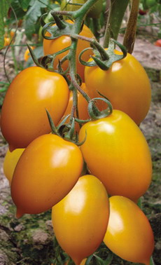 最新育成杂交一代黄色番茄品种,无限生长,生长势强健,果实长椭圆型,突尖顶果,成熟时果实金黄色,有光泽,单果重80克左右,可成串采收,硬度高,耐贮运,适合特菜基地或边贸生产之优秀品种。