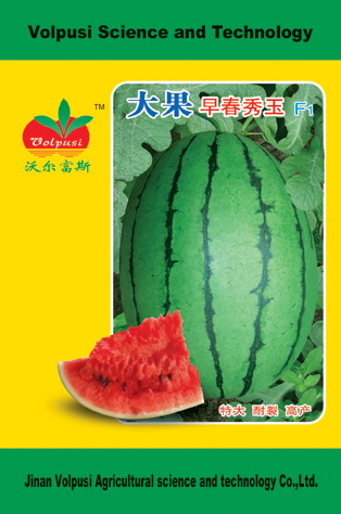 大果早春红玉,杂交一代,极早熟,从开花至采收约25天左右,单果重3公斤左右,比一般红玉果型更大,产量更高,果实椭圆形,果皮翠绿底覆墨绿清晰细花条带,皮色醒目外形美观,果肉大红,细嫩无渣,商品性好,果皮薄,且不易裂果,中心糖度最高可达14度,耐低温弱光性好,适于早春及夏秋保护地栽培。