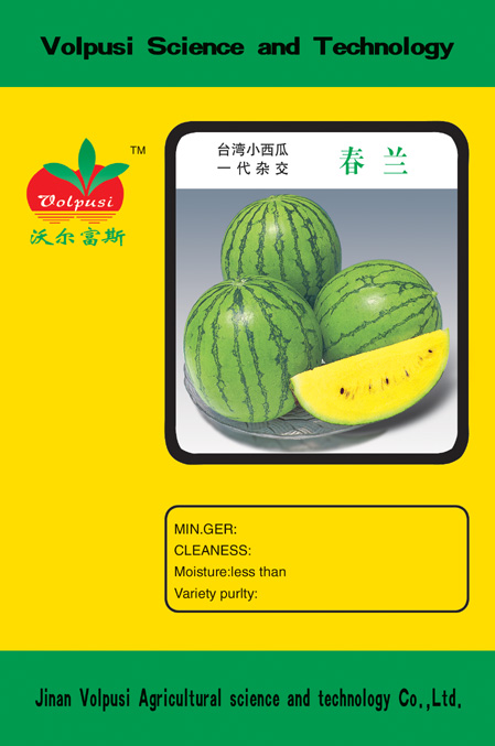 小型黄肉西瓜,极早熟,座果力强,丰产,果实圆球形,果皮绿色并带有数条青色条带,单果重2公斤左右,肉质鲜嫩,汁多爽口,纤维少,种子小而少,含糖量高达13%,口感非常好,是黄肉小西瓜之极品,适宜各地区保护地和露地栽培。