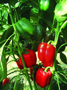杂交一代高档甜椒品种,植株生长旺盛,座果容易,果实方形,果实长