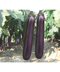 该品种是本公司从台湾最新引进的杂交一代紫红长茄。中早熟,植株生长强健,株型直立半开展、紧凑,抗逆、抗病性、抗高温能力强。果形顺直,果皮紫红色,有光泽,肉质白细、籽少,风味佳。适时采收果长约30-35cm,果径3.0-4.0cm,单果重250-300g。该品种花穗多,座果力强,连续采收性好,是个商品性佳,丰产性好,种植收益高的优秀紫红长茄品种。