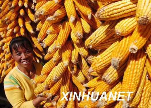 资料图片:2007年9月16日,贵州镇宁县朱家庄农民尹喜秀在翻晒刚收获的玉米(新华社记者杨俊江摄)