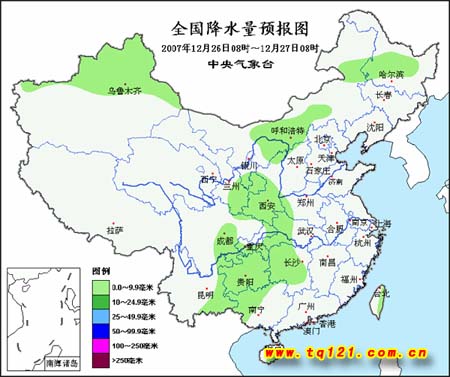 26日08时至27日08时,新疆北部、内蒙古中部和东北部的部分地区、黑龙江西部、甘肃东南部、陕西西南部等地的部分地区有小到中雪(雨)或阵雪,新疆东北部局地有大雪;四川盆地东南部、重庆南部、贵州、湖北西部、湖南中西部、云南东南部、广西西北部、海南东南部以及台湾东部等地阴有小雨或阵雨。新疆北部有5~7级、山口地区8~9级偏北风;东海、台湾海峡、南海北部海面有5~7级偏北风。