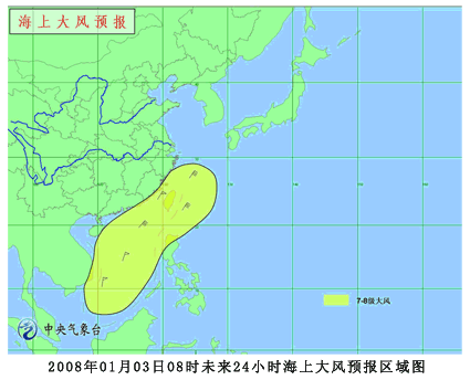 中央气象台1月3日早晨6时发布海上大风预报: