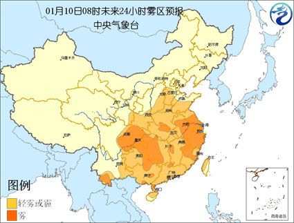 今天早晨到白天,西南地区东部、陕西南部、华北平原中南部直至华南的大部分地区将出现轻雾或霾,其中,苏皖中南部、上海、浙江大部、福建北部、四川盆地、重庆、贵州东部、湖南中西部、湖北北部和西南部、江西东北部和西北部、广西北部和南部沿海、雷州半岛以及云南西南部等地有能见度不足500米的雾,部分地区能见度小于200米。