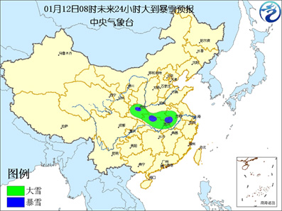 中央气象台今天早晨六点钟继续发布大到暴雪预报: 受冷暖空气的共同影响,预计今天白天到夜间,陕西中南部、河南南部、安徽中西部、湖北中北部等地的部分地区有大雪,局部地区有暴雪。 防 御 指 南: 1.政府及相关部门按照职责做好防雪灾和防冻害的应急工作; 2.交通、铁路、电力、通信等部门应当加强道路、铁路、线路巡查维护,做好道路清扫和积雪融化工作; 3.减少不必要的户外活动; 4.加固棚架等易被雪压的临时搭建物,将户外牲畜赶入棚圈喂养。信息来源:问天网