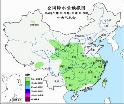 12日08时至13日08时,新疆北部沿天山地区、西藏东部的部分地区、青海东部、川西高原北部、甘肃大部、宁夏、陕西、山西中南部、黄淮西部、江淮、江汉地区等地有小到中雪或雨夹雪,其中,陕西中南部、河南南部、湖北中北部和安徽中西部的部分地区有大雪,局部地区有暴雪;江南大部、广西、广东北部以及四川盆地、重庆、贵州等地的部分地区有小到中雨,西南地区东部局部山区有冻雨或雨夹雪。内蒙古东部、华北东部、东北地区、黄淮、江淮、江南北部及东部沿海等地有4~6级偏北风,渤海、黄海、东海、台湾海峡、南海北部有6~8级、阵风9级的东北风。