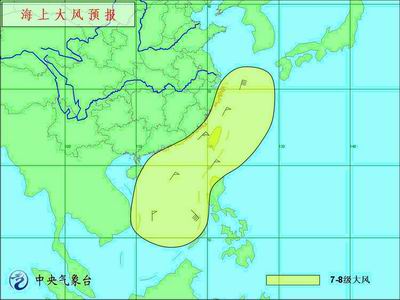 预计,今天白天到夜间,受南下冷空气影响,东海大部海域、台湾海峡、台湾以东洋面和以南海域、南海北部和中部海域将有7-8级的东北或偏北风,阵风可达9-10级。另外,受热带低压影响,南海南部海域将有7-8级旋转风。