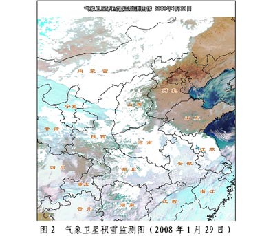 国家卫星气象中心消息,在2008年1月29日气象卫星积雪监测图中(见附图),内蒙古大部、华北、黄淮大部、江淮北部 、江汉北部、西北东部等地为晴空,江南、华南、西南东部等地有云区覆盖。在晴空区可见:内蒙古大部、河北西北部、山西、陕西大部、河南大部、安徽北部、江苏大部、江西北部、湖南中北部等地均为积雪覆盖(图中白色区域为积雪覆盖)。 我们将继续监测有关地区的积雪覆盖情况。 信息来源:问天网
