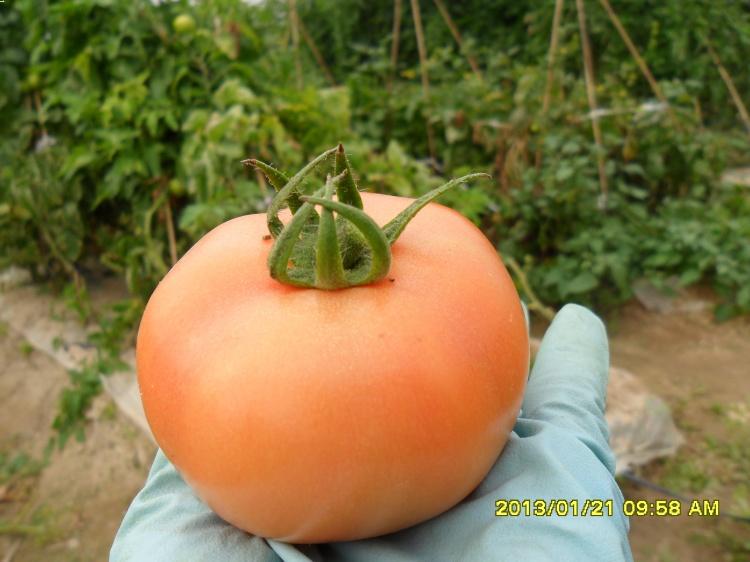品种植株生长旺盛,中早熟,大果型,单果重200g左右,果实圆球型,大小均匀,肉厚果硬,耐储运,商品性极好。连续坐果能力强,空洞果极少,不早衰,高抗叶霉病、青枯病、病毒病、低温下裂果、畸形果极少,露地、保护地均可种植。.[适合于全国各地栽培]