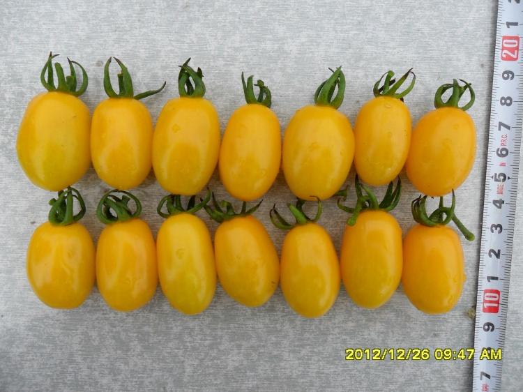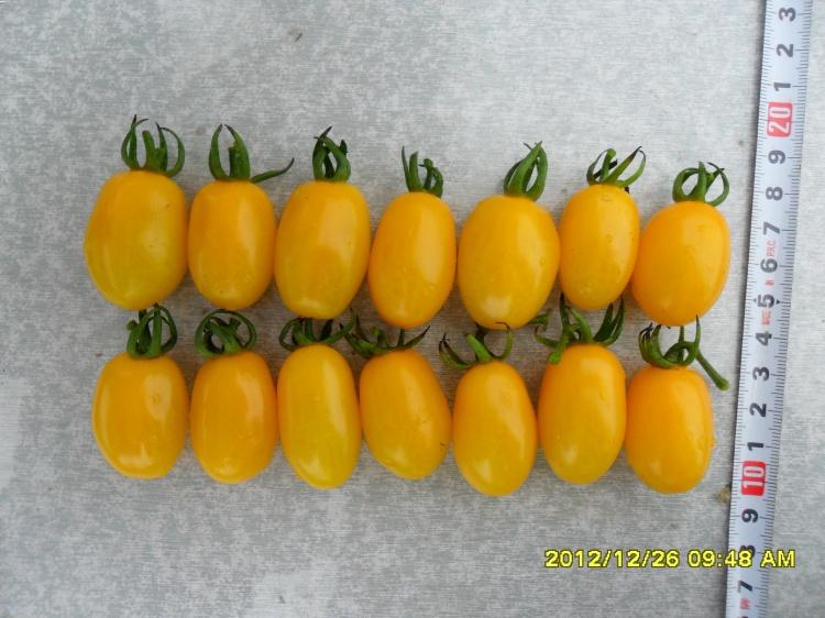 无限生长,中熟。果实长椭圆形,单果重15-20克,成熟果黄色,折光糖度高,口感风味佳,耐贮运性好,适宜保护地栽培。