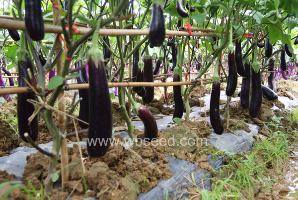 系一代杂交配种,中早生,抗病逆行强,栗紫黑色光亮,商品性好,耐老性特强,耐贮运,上架销售时间长,可销售4-5天不发软,是超市理想品种,果长30厘米左右,粗,6-8厘米,尾部圆润,耐热性好,适宜晚春,夏秋栽培,均可在山东及北方温室栽培。亩产可达10000公斤。
