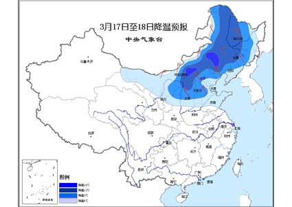 受东移南下较强冷空气影响,预计今天中午到明天,内蒙古大部、西北地区东部偏北地区、华北大部、东北地区大部以及黄淮东部等地将出现4~6级偏北风;冷空气前锋过后,上述地区等地的气温将下降4~8℃,其中,内蒙古中东部、东北地区中西部的部分地区降温幅度可达10~12℃,局部地区可超过16℃。