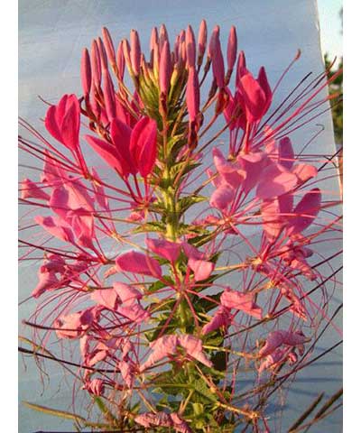 1年生草本。株高60-120厘米。植株有强烈的气味。叶片掌状裂开,小叶5-7枚成矩圆状披针形。总状花序顶生,花由底部向上层层开放,花瓣披针形向外反卷,花苞红色,花瓣呈玫瑰色和白色,雄蕊特长。蒴果圆柱形,种子浅褐色。花期6-9月。