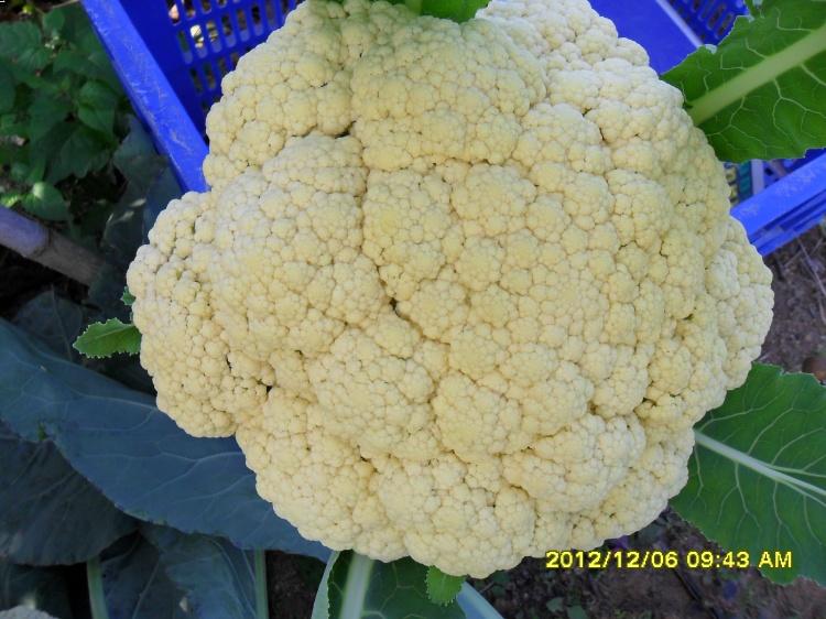 一代杂交,中晚生,耐寒耐濕,植株生長強健,容易栽培管理,花球潔白,青梗松花,單球重約2300克,秋播定植後約80天采收,春播定植後約60天采收,品質優良,産量豐高。