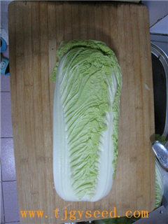 叶球为直筒叠抱,株高52cm ,株展66cm ,球高40cm,球径15cm .