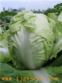 该品种为耐热结球白菜一代杂交种。 植株为矮桩头球类型,早熟种,生育期50-55天,单株重1.5kg左右。株高35厘米左右,球高27厘米左右,株形半直立,外叶绿色,中肋白色,球顶叠抱,生长速度快,球形整齐美观。耐热、耐湿,35℃高温下正常结球。抗霜霉病,软腐病和病毒病。商品品质和口感品质均好,粗纤维含量少,生食口感甜脆,熟食易烂,每667平方米产量4000kg左右。