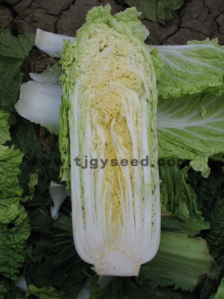 特征特性: 该品种为秋早熟包头型大白菜一代杂交种。 植株为绿帮短筒包头类型,生育期65天左右,单球重2.5kg。株形紧凑,叶色深绿,球帮浅绿,球顶叠包。叶纹适中,品质优良。结球性和早熟性强,抗病性强。净菜产量5000kg/667m2左右。