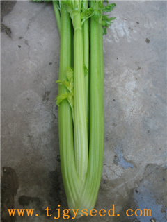 特征特性:1、从美国纯种文图拉中经多年选育而成,植株直立性强,叶簇紧凑,生长速度快,从定植至收获80天左右。2、株高80厘米左右,每667平方米(亩)产10000千克左右。3、叶色淡绿,叶柄肥厚光滑,质地脆嫩,纤维少,抗抽薹。4、定植密度:株行距15X15厘米。适时浇水施肥。