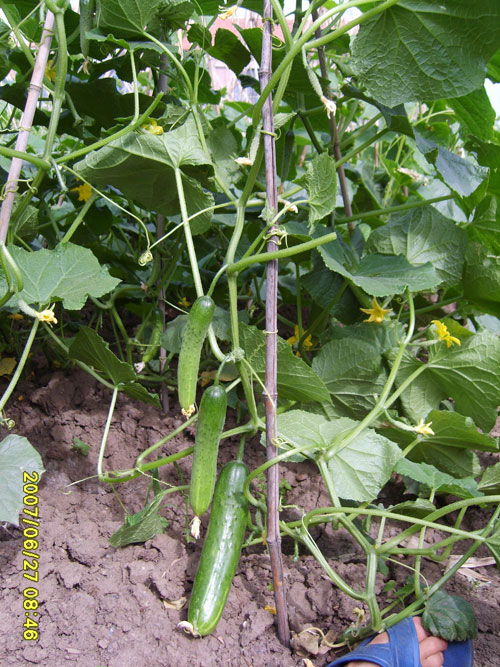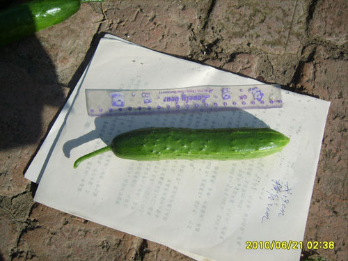 强雌型,长势强,抗病性好。瓜长18-20厘米,横径4厘米。口感清香甜脆。长19cm、 横径3cm.