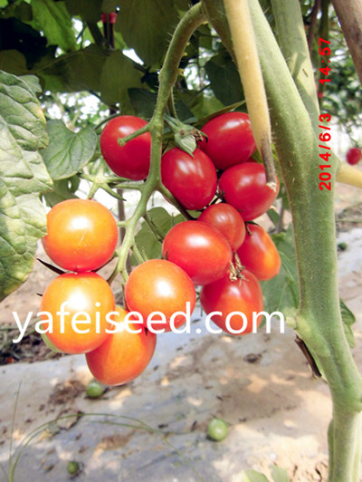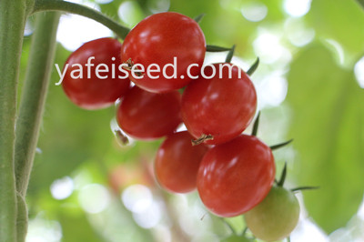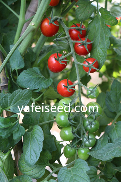 产品介绍: 特性①无限生长型,生长势强,第一花序着生在7节左右,以后每隔2叶着生一花序。坐果率极高,每花序可结果30个左右,最多可结60个以上。 ②适果实近圆形,成熟后深粉红色,果味甘甜浓郁,平均单果重20g,大小均匀,果实整齐,裂果少,耐贮运。 ③高抗叶霉病,病毒病,晚疫病。
