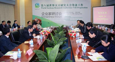 12月24日,第八届世界大豆研究大会组委会在京举办了以共谋发展为主题的企业家研讨会,来自国内外的20多家企业代表就大会招展和招商等热点问题进行了讨论,在深入了解大会筹办情况后,纷纷表示愿意积极支持和参与第八届世界大豆研究大会。此间,企业代表还共同交流了明年国际大豆产业的发展趋势及可能面临的问题。