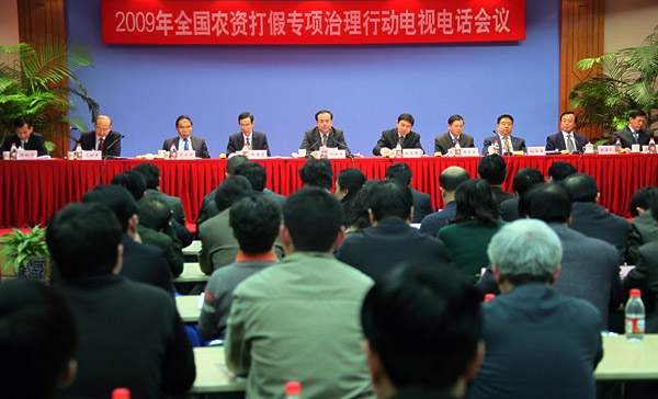 2月17日,全国农资打假专项治理行动电视电话会议在北京召开,农业部、最高人民法院、最高人民检察院、工业和信息化部、监察部、公安部、工商总局、质检总局、供销总社等九部门要求各地立即行动起来,迅速开展2009年全国农资打假专项治理行动,尽快形成打击制售假劣农资等坑农害农行为的强大声势,切实维护农资市场秩序,确保农资质量,满足生产需要,维护农民权益,为力争今年粮食和农业有个好收成提供重要保障。
