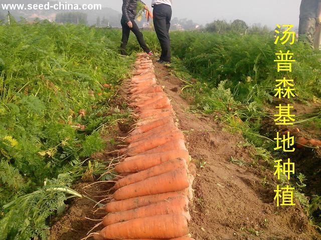 新一代杂交优美长圆柱形,耐低温抗抽苔、产量高、品质优良的品种,植株生长势强而不旺;表皮、韧皮部、髓部均为浓鲜红色,肉质根根型整齐,根长24-26cm左右,根粗5cm,根重400克左右;胡萝卜素含量高,品质好;生长期120天,可延迟到160天收获,亩产6000kg左右,是适合鲜食与加工出口的理想品种。