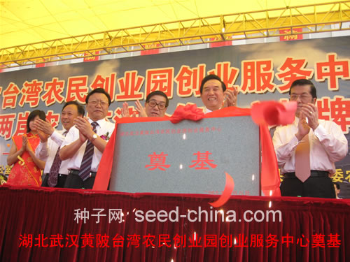 种子网5月8日消息(记者陈志)5月8日,湖北武汉黄陂台湾农民创业园创业服务中心奠基暨武汉海峡两岸农业交流中心揭牌仪式今天下午在黄陂区武湖农场武汉农科院展示中心举行。海峡两岸关系协会会长陈云林、中国国民党副秘书长张荣恭、湖北省委常委、统战部部长苏晓云、武汉市委书记涂勇等有关领导,台湾知名人士、台湾农业专家和台商1000多人出席了会议。