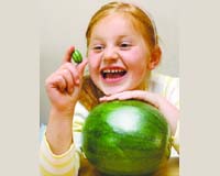 来自剑桥的5岁女孩莫利·鲍尔拿起西瓜就狼吞虎咽起来。