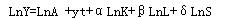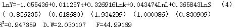引入LnS,运用OLS 进行模型的估计,结果如下: