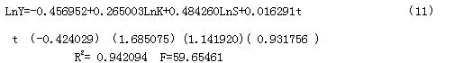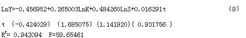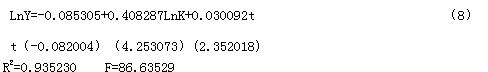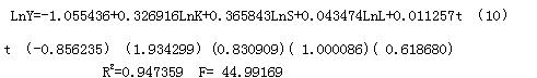 引入LnK,运用OLS 进行模型的估计,结果如下:
