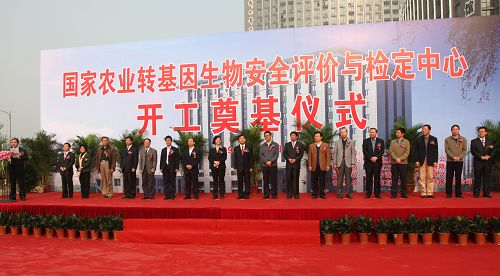 由农业部科技发展中心申请承建、农业部推荐申报、国家发展改革委批准的国家级重大高新技术建设项目---国家农业转基因生物安全评价与检定中心于29日正式启动并举行开工奠基仪式。本项目2009年10月开工建设、计划2011年12月投入使用。农业部副部长张桃林宣布国家农业转基因生物安全评价与检定中心奠基仪式开始,农业部党组成员、人事劳动司司长梁田庚在启动仪式上致辞,各有关司局领导出席了启动仪式。