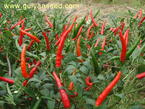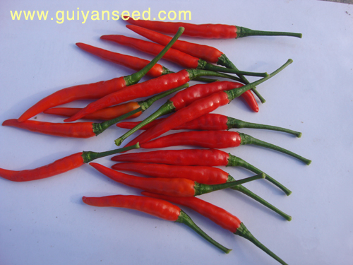泰国引进杂交一代小辣椒,果实单生,朝天生长,果形整齐一致,硬度好,耐贮运,商品性一流,椒长约5—7厘米,直径0.6—0.8厘米,单果重3—4克,植株生长旺盛,座果能力特强,产量高,椒形美观,味道辛辣,香味浓,适合鲜食加工干制,抗病毒病,枯萎病,适应性较广。