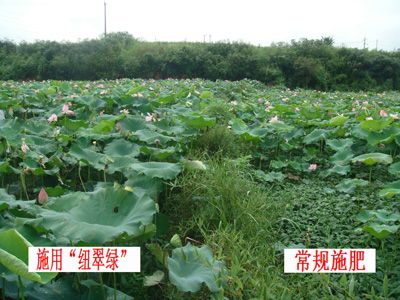 莲藕施用“纽翠绿”后与常规施肥的对比: