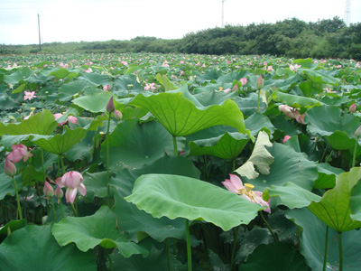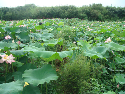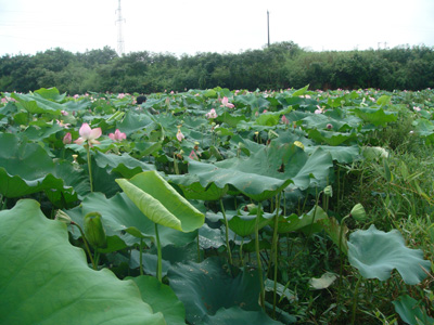 施用“纽翠绿”后,荷塘一片接天莲叶无穷碧,映日荷花别样红的景象: