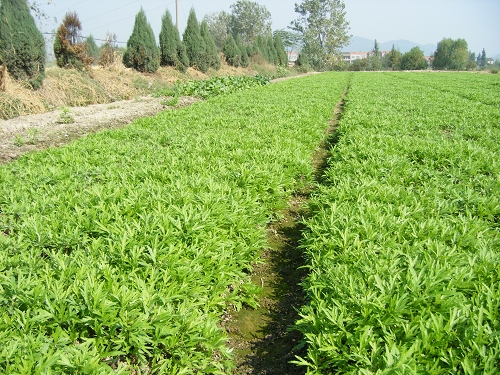 苗中期冲施纽翠绿,藜蒿叶片变大,颜色变得亮黄,且茎秆也变得白嫩。