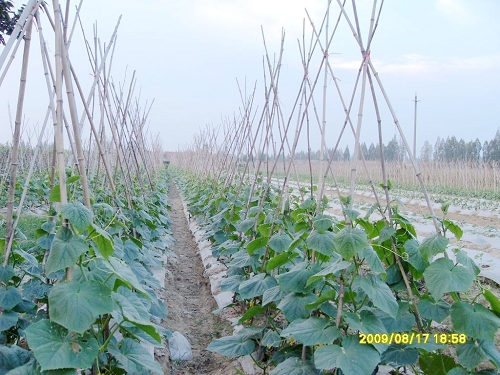 与下图同时移栽但未施用纽翠绿的黄瓜