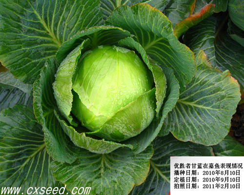 产品介绍:欧洲进口品种,圆球,定植后80天左右收获,单球重1.5-2.5公斤,叶片厚,色泽绿,特耐裂球,适合长途运输,长江流域7月底到8月上旬播种最佳,可推迟到来年4月上市,品质极佳。亩栽苗3500株左右。菜商专选该品种出口俄罗斯。