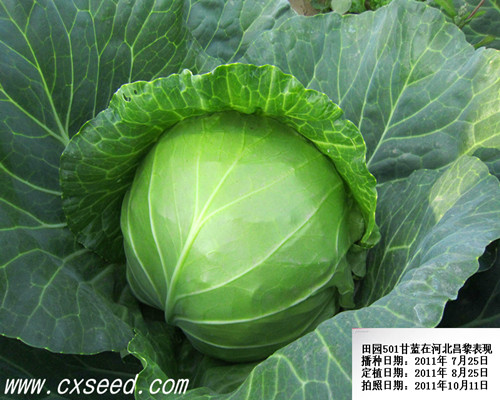 产品介绍:本品种由欧洲引进杂交一代极早熟圆球型品种,定植后48-55天左右收获,单球重1-1.5公斤,包球紧实,耐裂好,色泽光亮,品质极佳。长江流域最佳播期为7月下旬-8月底,其他地区参照当地的种植习惯,亩栽苗5000株。适合肥沃的地块种植。这个品种是对比日本希望的,早熟性更好,中心柱更短,球叶光亮鲜绿,球形更圆正,株型整齐一致,可延迟采收半个月。