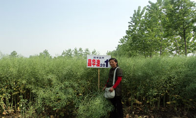 晶华油201是以中双四号及其优良变异株706,163为亲本杂交选育而成的优质、高产、抗病、抗到的中早熟、半冬性、甘兰型油菜新品种。株高中等,幼苗半直立,叶色绿,移栽,直播皆宜。
