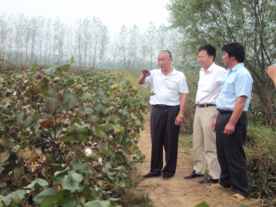 2009年9月26日,湖北省农业厅种植业处副处长周明炎在荆州考察中棉所63