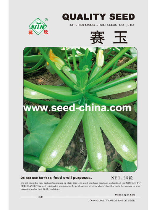 特征特性:早熟,短蔓。植株长势较强,掌状深缺,叶而有不规则银斑,雌花率较高,每间隔1-2叶一瓜,不容易化瓜,幼瓜长20-25厘米,粗6-7厘米,瓜条直顺,粗细均匀,外观鲜嫩诱人,商品性好,颜色鲜嫩,光泽度好,品质优秀,抗病性强,高抗病毒及白粉虱,采收期较长,亩产8000-11000公斤。耐寒性好,是日光温室及保护地比较优选的品种。栽培株数可依当地的栽培方式而定。培育壮苗,利于丰产。