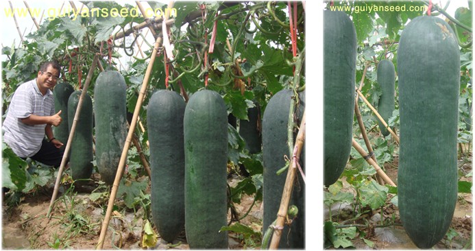 新育成中晚熟杂交黑皮冬瓜品种,生长旺盛健壮,耐热、耐寒,高抗枯萎病、炭疽病,综合抗病能力特强,叶色深绿,茎粗,易座瓜,整齐一致,春播生长期110-160天,果实长圆柱形,顶部顿圆,形似炮弹,瓜形上下均匀一致,皮黑色一致,瓜长60-90厘米,直径20-36厘米左右,单瓜重15-25公斤。最大单瓜重40公斤以上,瓜长达100厘米,亩产约6000公斤,高产达8000公斤以上。肉厚腔小,肉质致密,清甜,极耐贮运,适合全国各地种植。