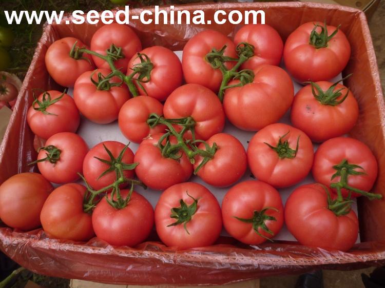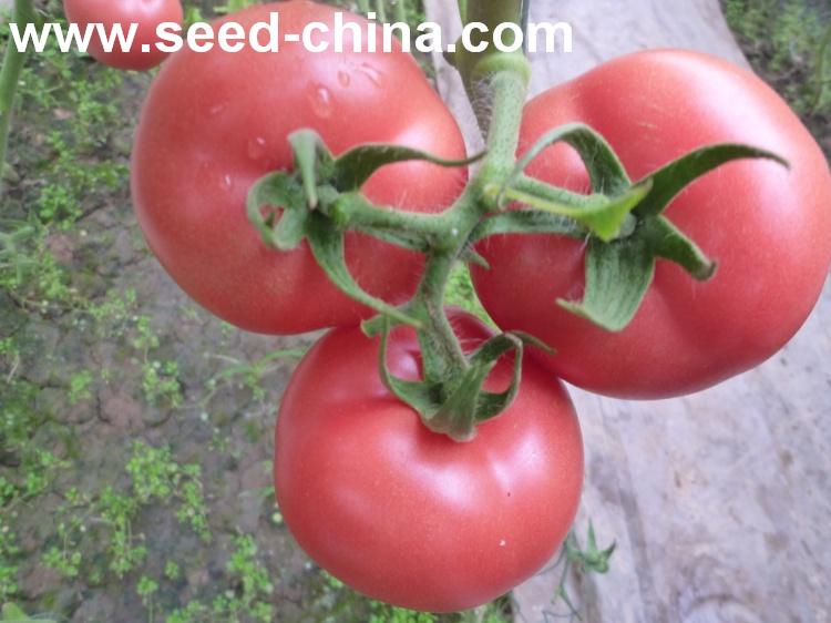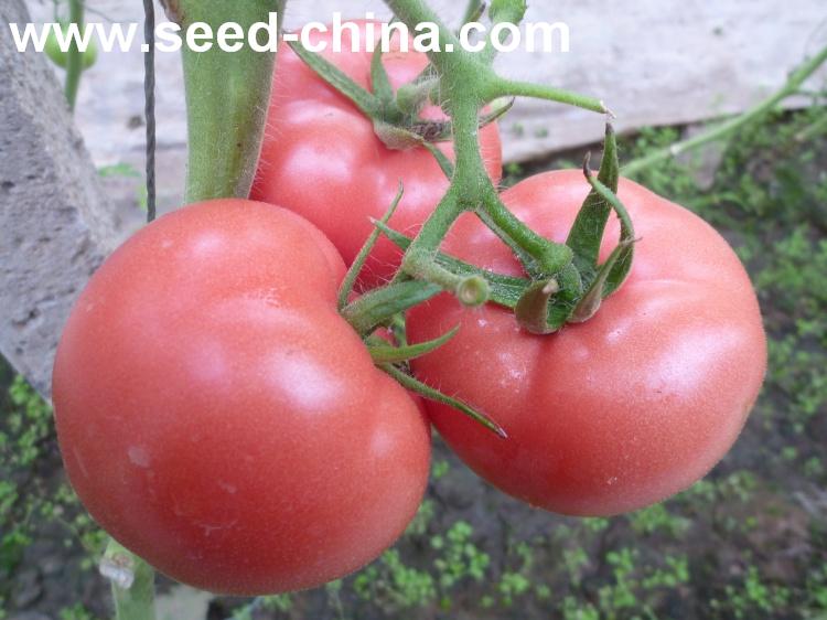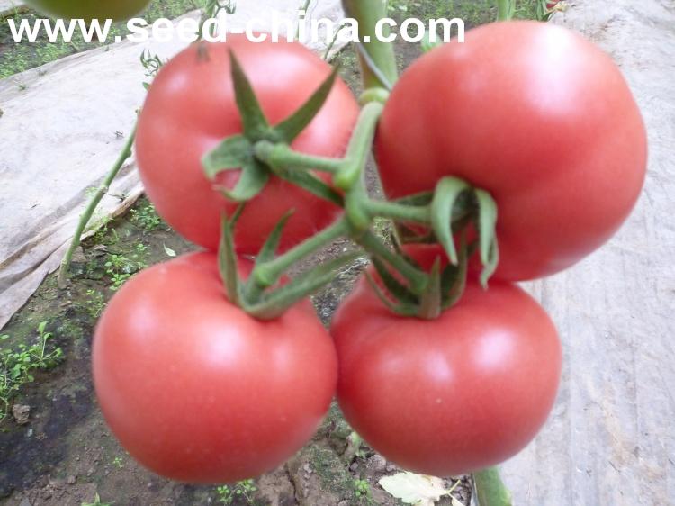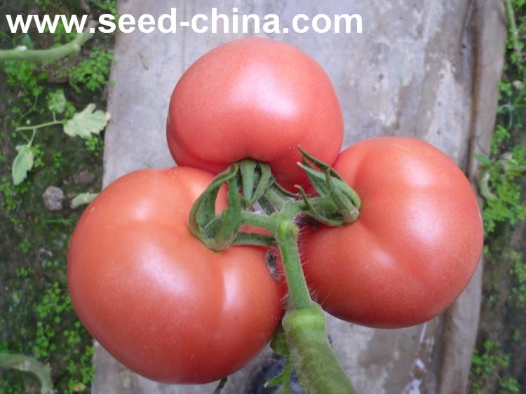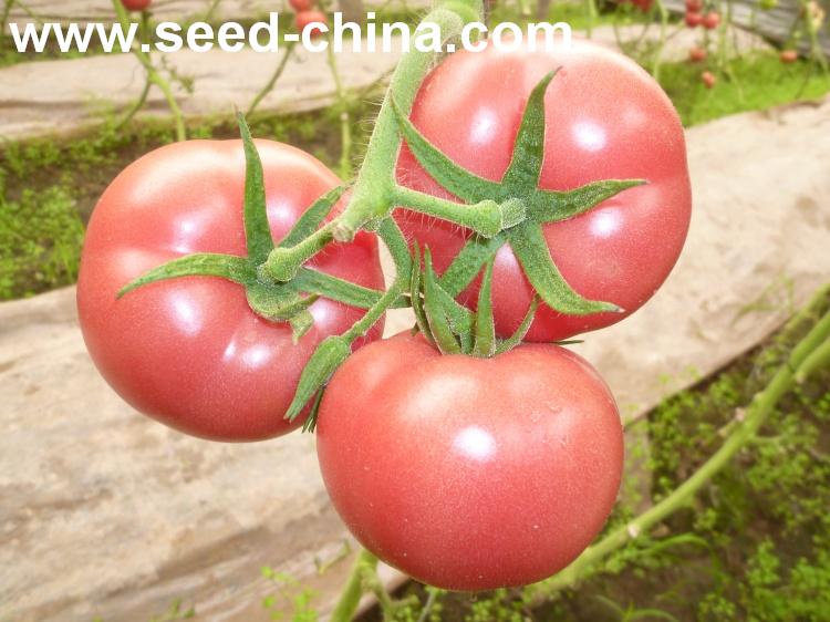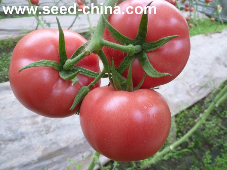 无限生长类型,叶片较小,叶量中等,早熟。植株生长势较强,连续座果能力强,可连续座5-6序果。果实商品性好。果实高圆型,无绿肩,成熟果粉红色,表面光滑发亮,果脐小,畸形果、裂果少。大小均匀,一般单果重250-300g左右,商品率高。硬度好,耐运输,货架期长。抗番茄黄化曲叶病毒(TyLCV)。同时还抗番茄花叶病毒(ToMV),中抗黄瓜花叶病毒(CMV),抗枯萎病和叶霉病,晚疫病、灰霉病发病率低,无筋腐病。